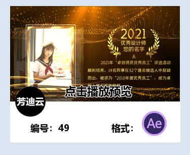 AE模板年会颁奖制作典礼开场片头表彰视频人物优秀员工介绍词素材